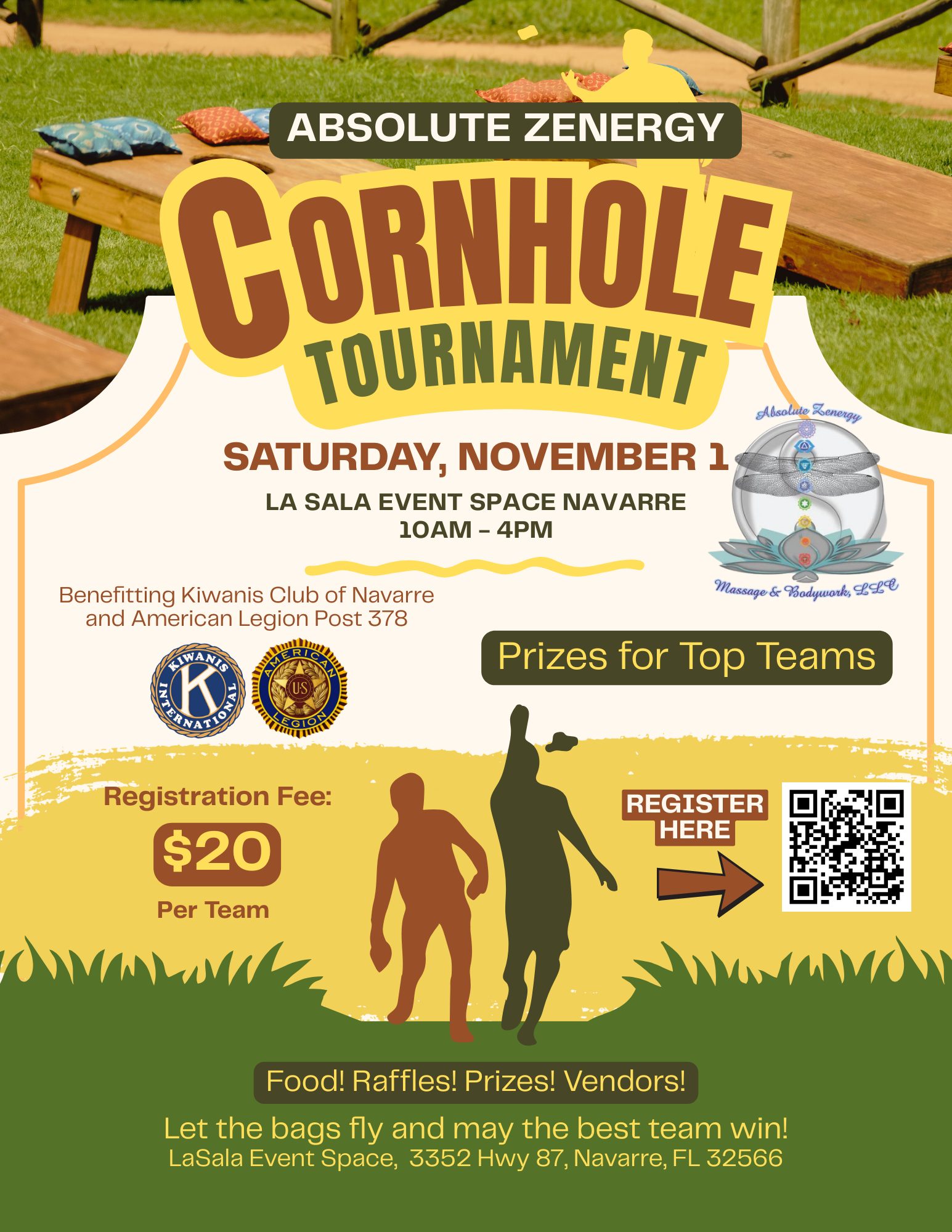 Get ready to toss some bags and test your skills at the Absolute Zenergy Cornhole Tournament!
