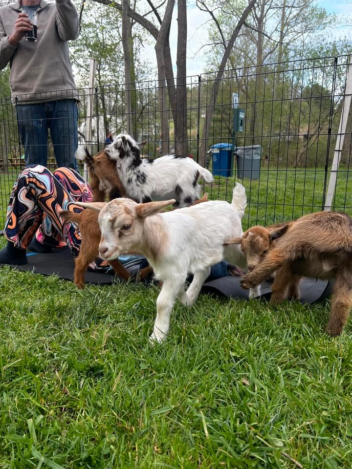 Come out for a fun afternoon of yoga with these baby goats. This is a beginner’s class for all ages and experience levels. You goat this. Cost is $33 (+tax/fees) and includes approximately 1 hour of goat yoga and 1 beverage. Please arrive 15 minutes prior and bring an old towel or mat for the class.